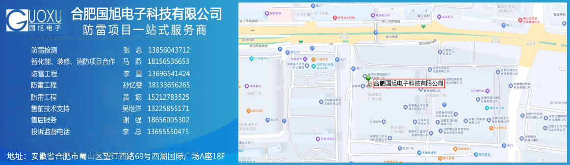 合肥國旭電子科技有限公司創(chuàng)立于2006年,總注冊資本2008萬。公司總部地址位于安徽IT主流商圈核心,合肥市蜀山區(qū)望江西路與肥西路交口西湖國際廣場。 公司是專業(yè)從事智能防雷檢測系統(tǒng)、智能化工程設(shè)計與施工工程、防雷設(shè)計施工工程、數(shù)據(jù)中心機房、消防工程、網(wǎng)絡(luò)監(jiān)控安全技術(shù)防范工程、及智能變電站安全預(yù)警系統(tǒng)。